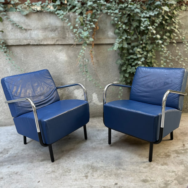 Set of 2 leather Bauhaus cinema chairs from KEBE Denmark, with tubular steel frame and legs, from the 1970’s.