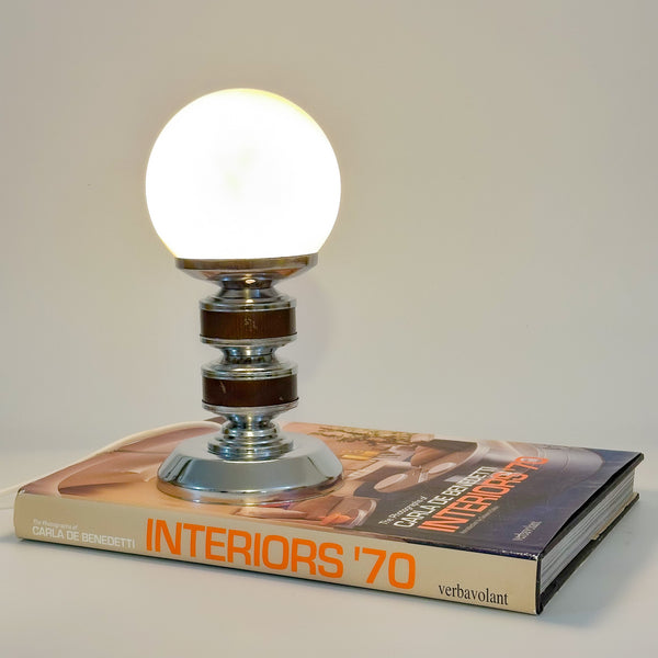 Art- Deco table/nightstand chromed lamp with opaline globe shade, serviced in our workshop- all electrical parts were replaced.