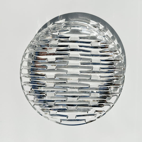 Heavy crystal serving tray. It has some signs of wear on the back(superficial scratches)