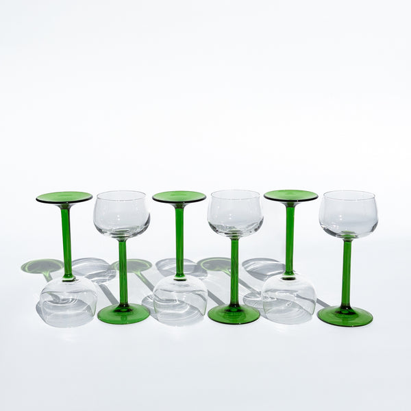 Vintage Luminarc France wine glasses with emerald green stem. Set of 6.