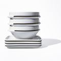 Made of fine porcelain, featuring a dark blue line and a matching rectangular dish.