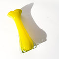 Lemon yellow tulip shaped glass vase with clear glass details.