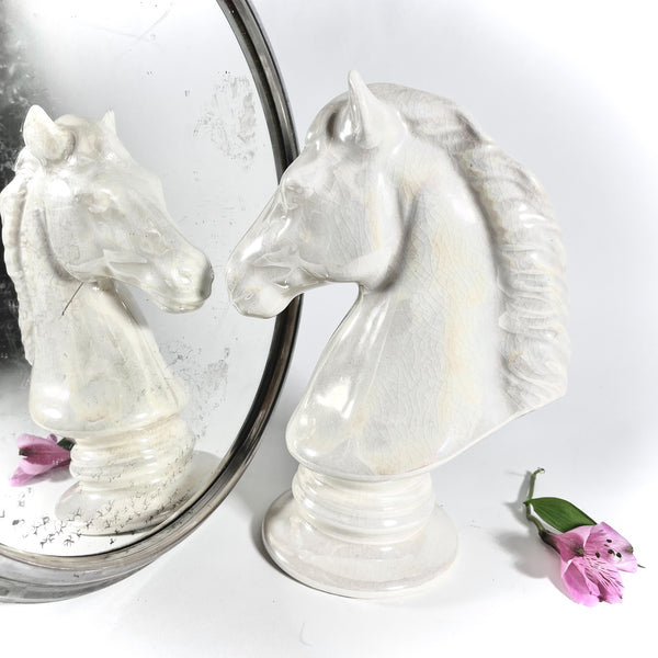 Opalescent Chess Horse glazed ceramic statue.